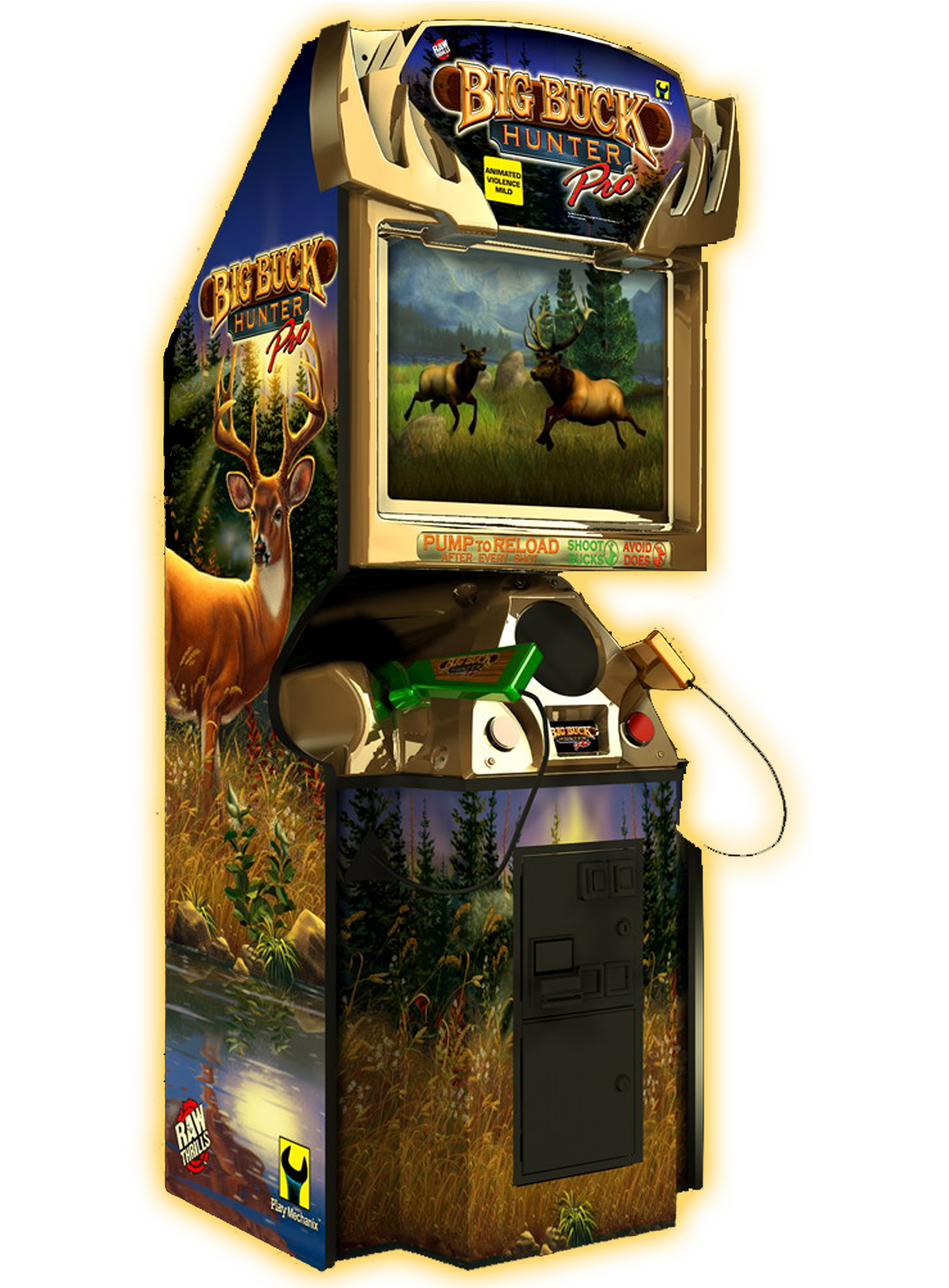 Big Buck Hunter® Pro is a new species of hunting game that delivers a hot new quarry of no-limit fun to players everywhere. Big Buck Hunter® Pro features an all-new two-player element known in the game as “Shootout”. Shootout lets two players compete in head to head, real time competition. Test results indicate the feature is a hit with new hunters as well as seasoned marksmen. But that’s not where it ends…… Big Buck Hunter® Pro also boasts 5 all-new, high-definition 3-D modeled animals to hunt. These animals look and move more realistically than ever before. Hunt Whitetail Deer, Elk, Prong Horn Antelope and now Moose and Big Horn Sheep. Hunting treks are now organized by species and not by region.